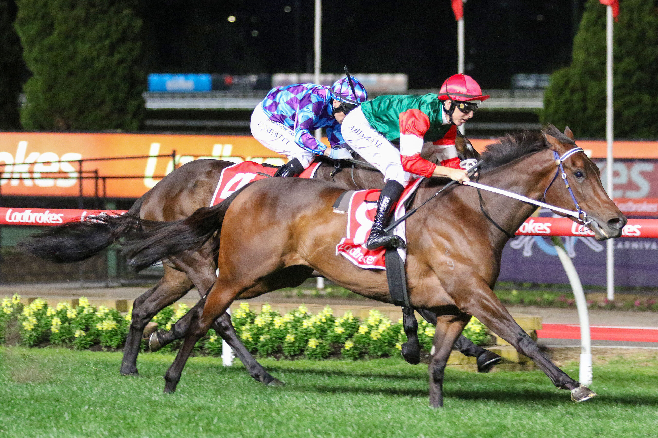“It was all new to her and she was above herself in the mounting yard because it was night racing and usually she’s at home having a feed,” Miller said.