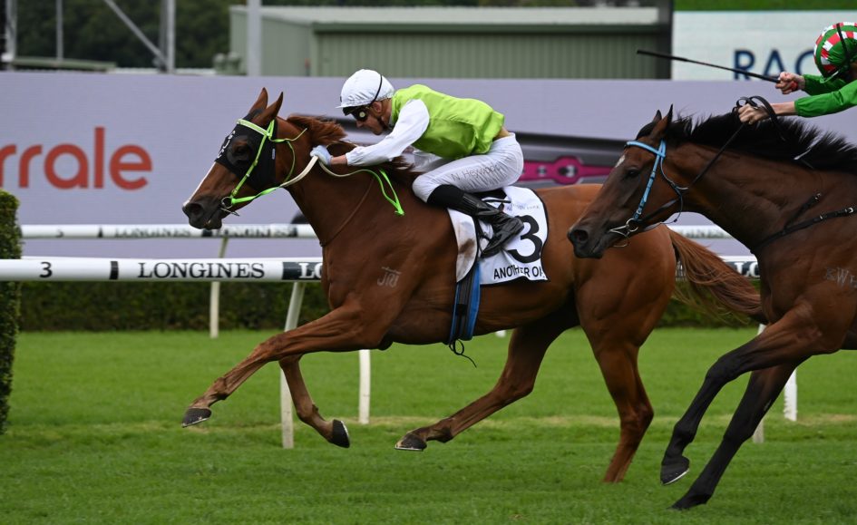 Ridden by Nick Heywood, Another One ($8.50) swept home along the inside to score by a half-neck over Commando Hunt ($9) with Amulet Street ($51) a length away third.