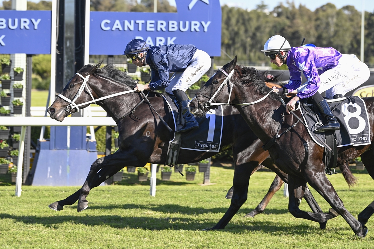 The $1.4 million son of Wootton Bassett and champion mare Sunlight was caught behind a wall of runners in the Myplates Handicap (1250m), but jockey Adam Hyeronimus remained composed, angling the favourite into the clear and driving home to defeat stablemate Crossbow ($19) by a neck. Kokatahi ($13) ran third, giving Chris Waller a clean sweep of the placings.