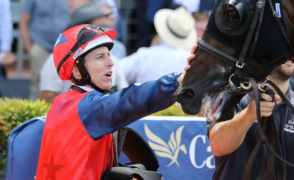 Jockey Damian Lane did not waste any time getting back in the winner’s enclosure after a recent stint representing Australia overseas.