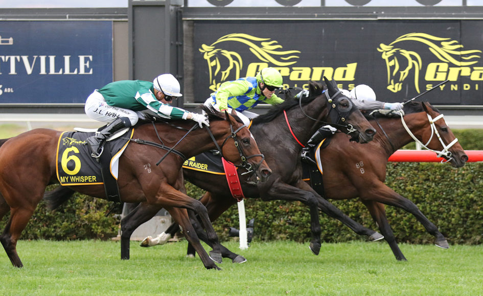 Ridden by Daniel Moor, Glint Of Hope ($13) scored by a head from Barb Raider ($10) with the $2.70 favourite My Whisper a long-head away third.
