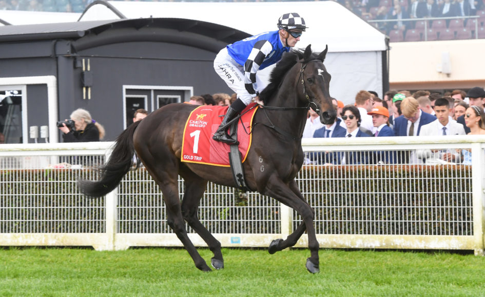 Gold Trip is backing up into the Group 1 2040m showpiece at Moonee Valley on Saturday after finishing second to Durston in the Group 1 Caulfield Cup (2400m) last Saturday.