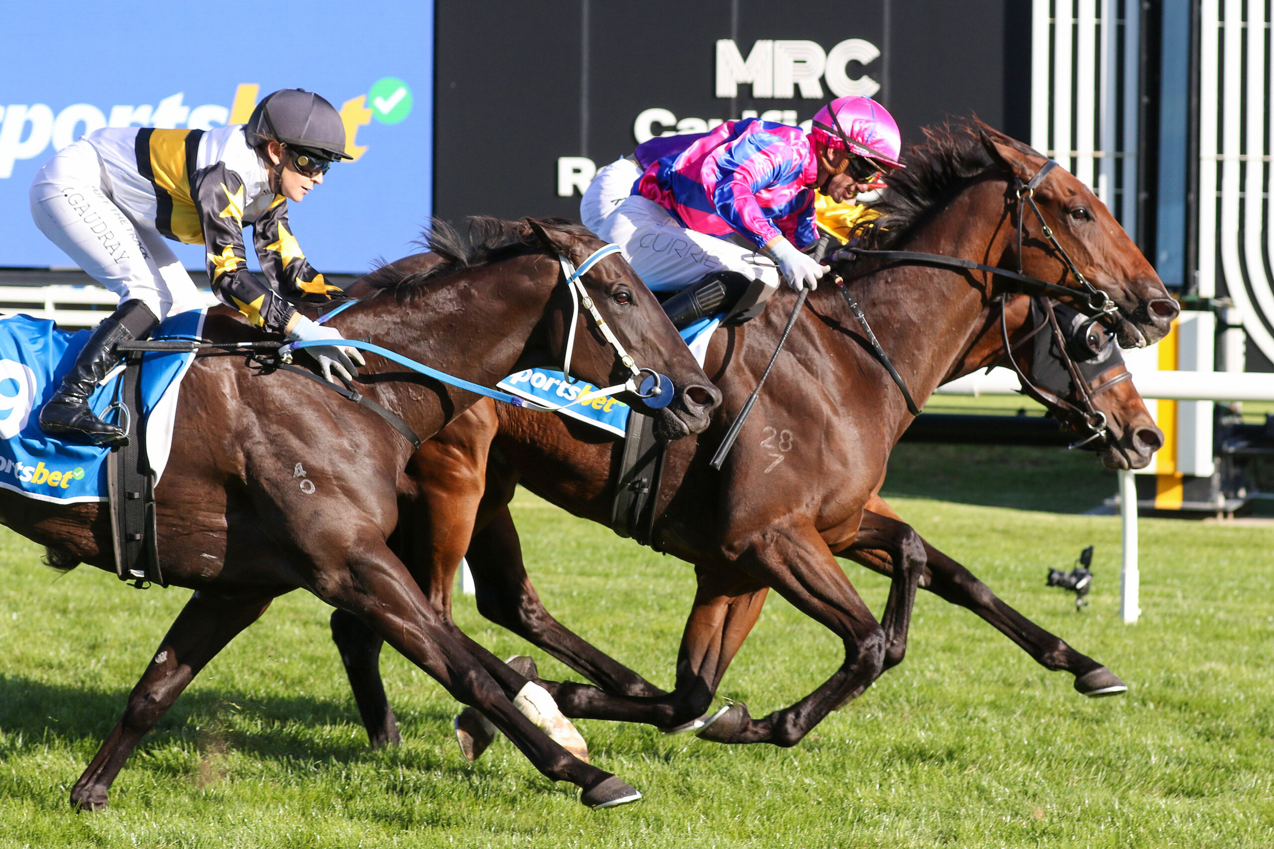 Luke Currie guided the $11 chance through traffic late to get the bob in over Miss Aria ($9.50) and Roll On High ($11), winning by a narrow half-head.