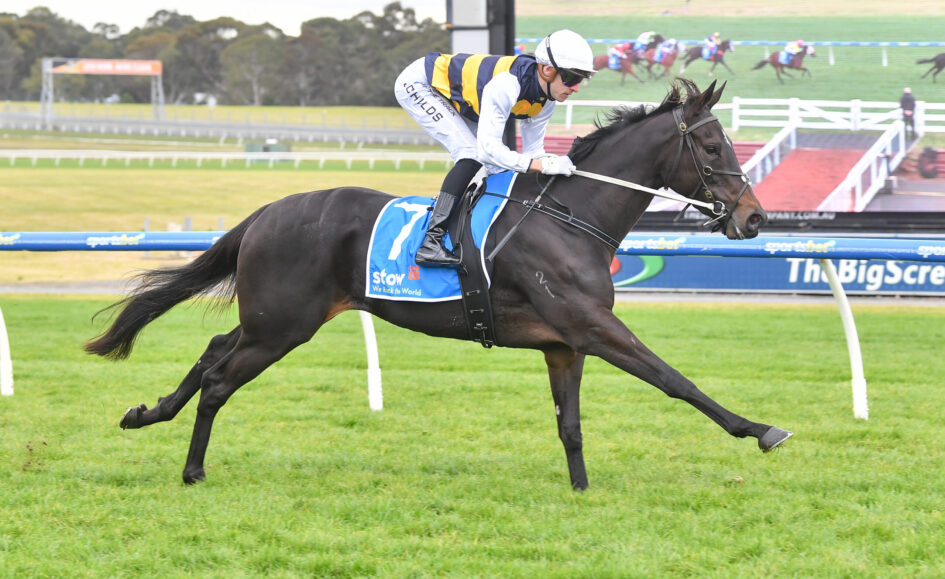 Sent out at $2.35 and carrying the same OTI silks, Knobelas delivered a commanding performance under Jordan Childs in the Stow Storage Solutions Handicap (1600m), winning by 3¼ lengths over All Business ($8.50) and Colour Our Word ($6).