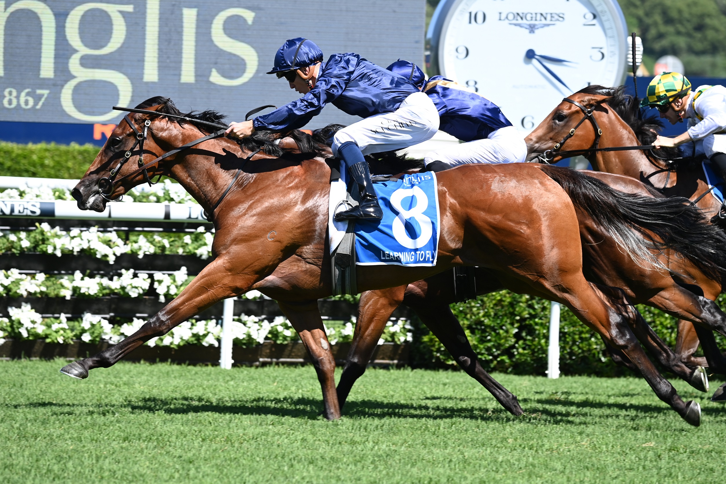 Celebrations for Learning To Fly’s ($4 fav) stunning win were subdued but the filly did an enormous job to overcome a wide draw and storm down the outside to defeat Blanc De Blanc ($7) by a short neck.