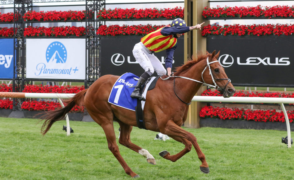 The star Chris Waller-trained sprinter with a strong Melbourne ownership group, blitzed his rivals down the straight Flemington 1200m course on Saturday to claim a second win in the feature sprint over the Melbourne Cup Carnival.