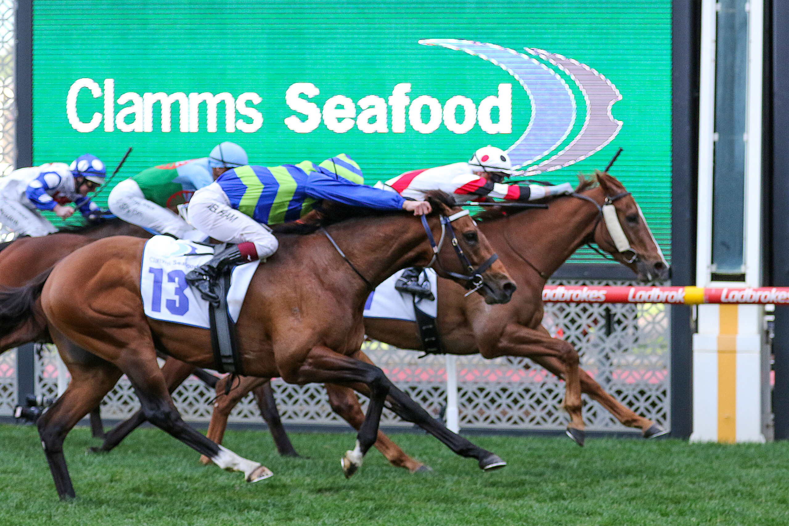 The $3.20 favourite Globe barely crossed the line finishing a long last.