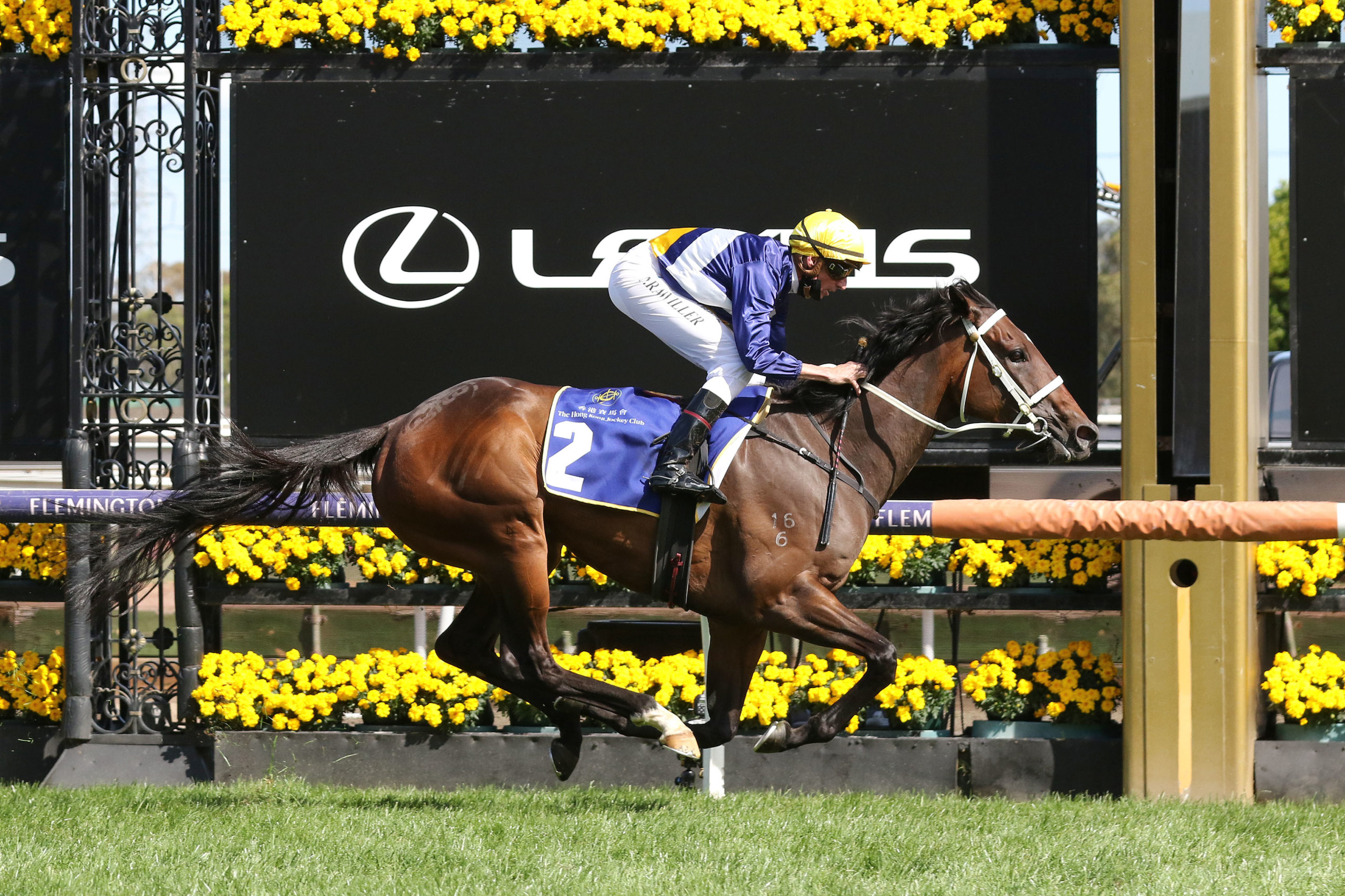 The Busuttin and Young-trained Rich Hips ($7) has saluted in the Group 3 Hong Kong Jockey Club Stakes at Flemington for the second year running with a daring ride from visiting hoop Nash Rawiller.