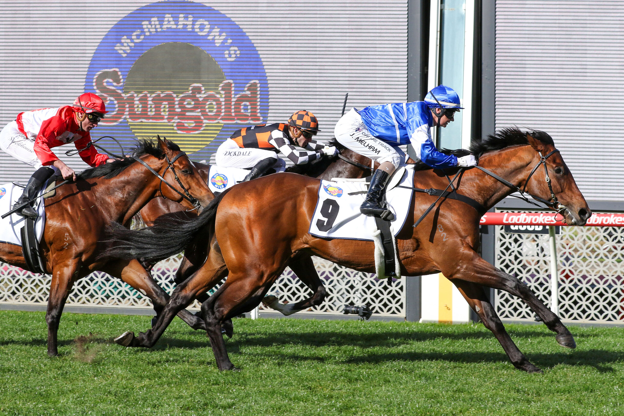 Rosberg is being aimed at the Group 1 Coolmore Stud Stakes (1200m) at Flemington on November 1, with a likely stepping stone being the Group 2 Danehill Stakes (1100m). The colt’s winning rider Jamie Melham – taking over from her suspended husband Ben – said there was still significant improvement to come. “He’s a proper horse,” she said. “He was a bit rude behind the gates and hated the rail, but once he got out, he let down really well. He’ll only get better with racing, and I’m sure he’ll be spot on for Ben next start.”