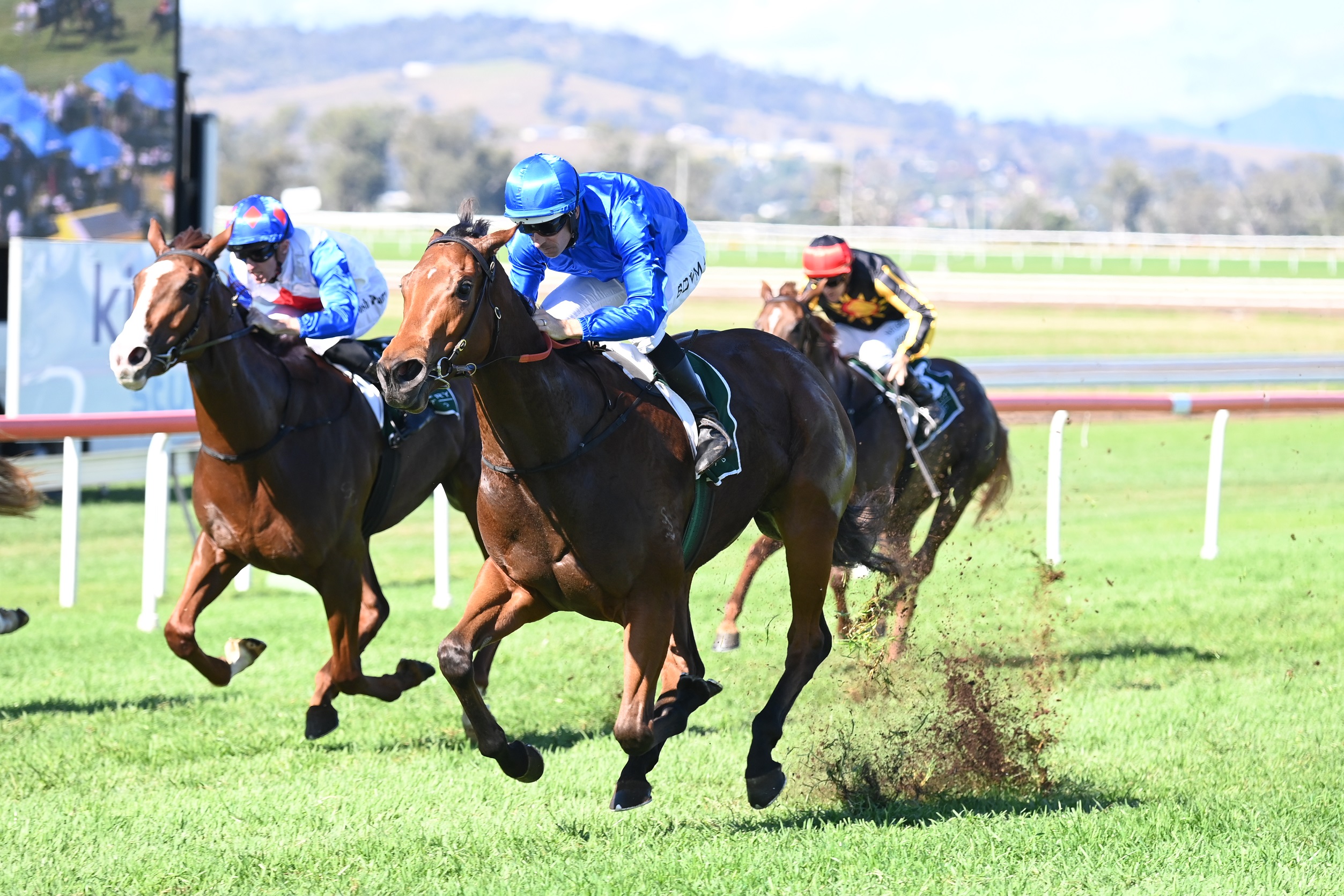 But champion jockey Hugh Bowman was able to navigate a path towards the better ground in the straight and the $3.60 favourite unleashed a sparkling finishing sprint to score by 1-1/2 lengths over Golden Queen ($41) with leader Penthouse ($17) running a cheeky race to hold third.