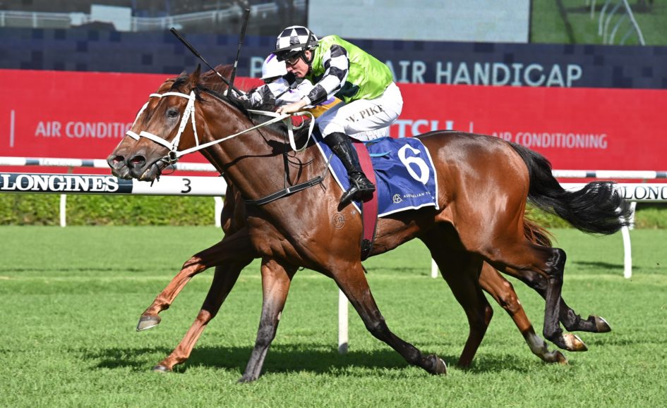 Irish Sequel started at $4.20 and ran down his Chris Waller-trained stablemate and McDonald’s mount Aleas ($3 fav) to score by a half-neck, giving Pike his first Sydney winner for the champion trainer.