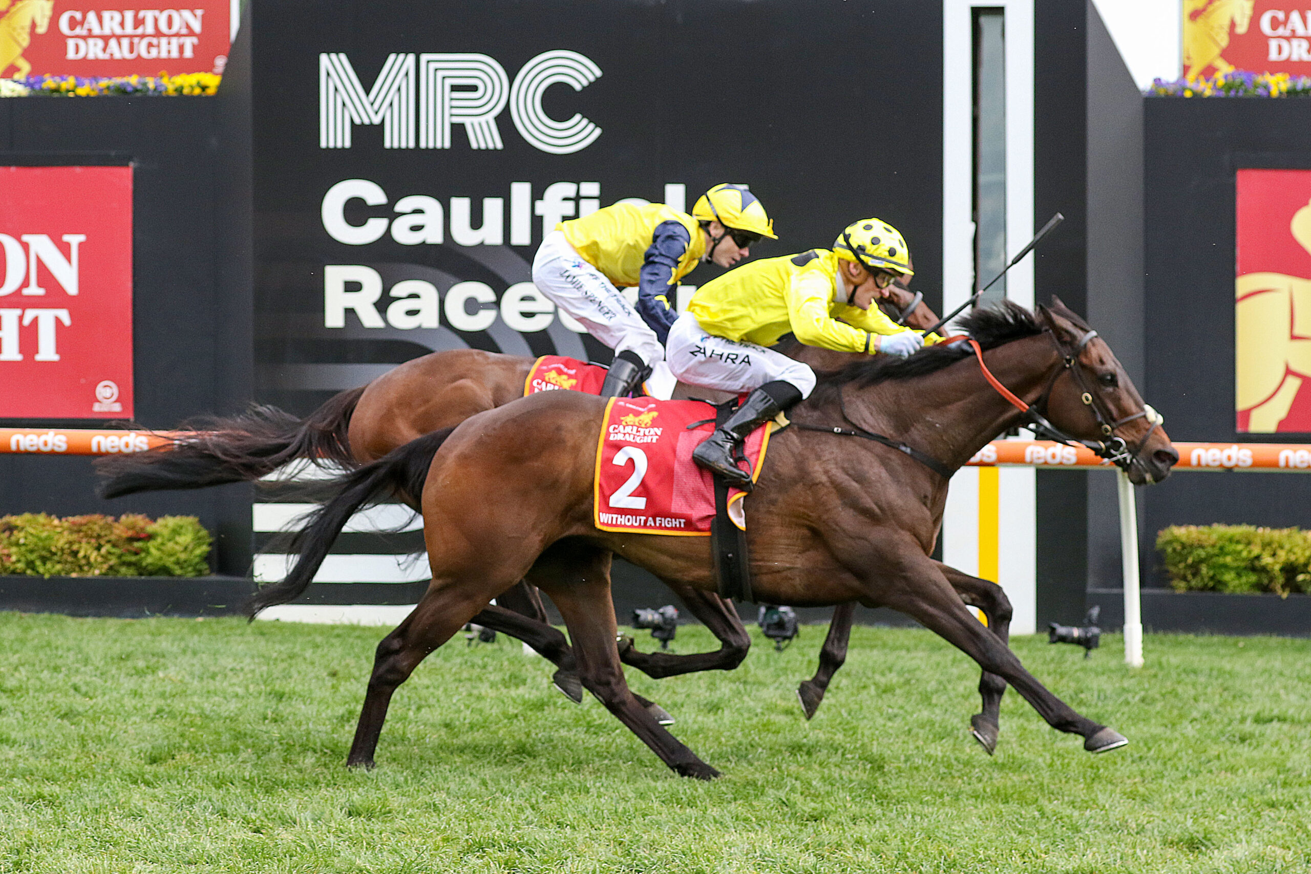 Mark Zahra’s faith in Without A Fight was vindicated when the imported galloper provided the jockey a second Caulfield Cup in four years.