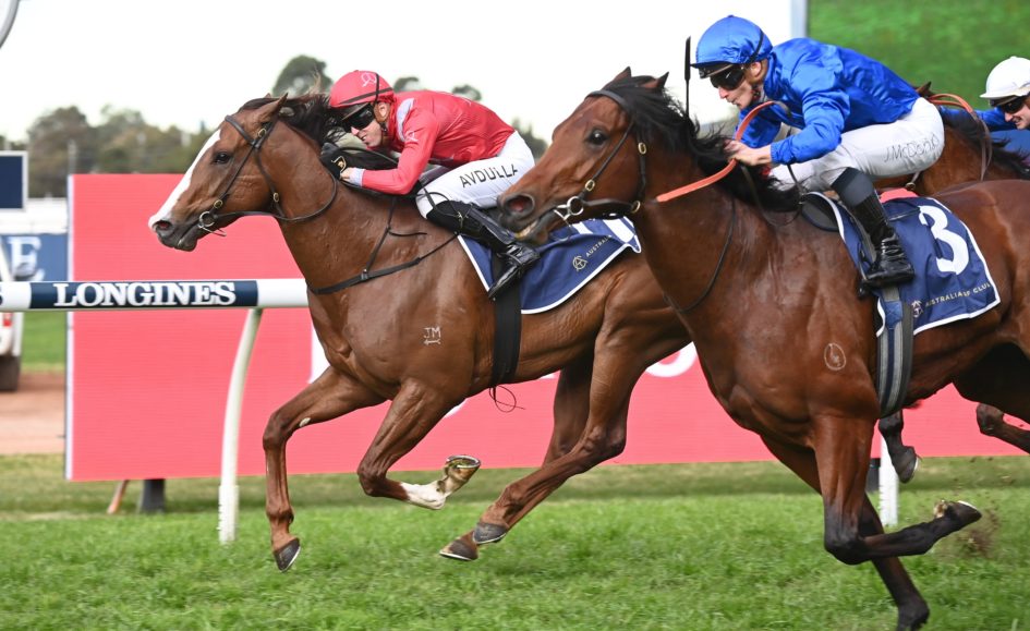 The Snitzel colt powered to the line late to defeat Godolpin’s Spacewalk ($4) by a short head with the other Godolphin runner Troach ($11) a further length and a quarter back in third.