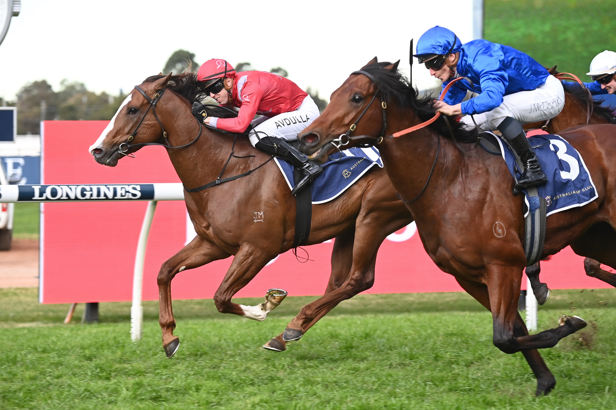 The Snitzel colt powered to the line late to defeat Godolpin’s Spacewalk ($4) by a short head with the other Godolphin runner Troach ($11) a further length and a quarter back in third.